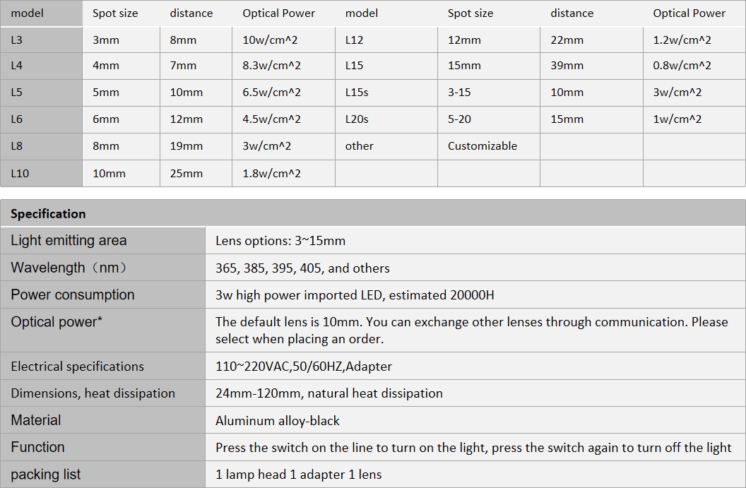 Wavelength: 365, 385, 395, 405nm and others